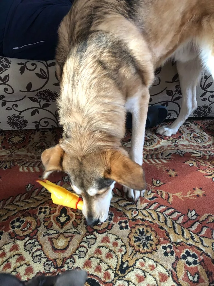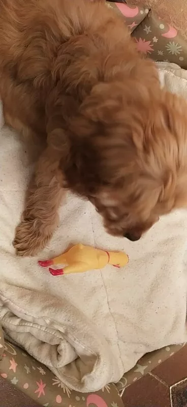 There isn't much to say. It's a yellow rubber chicken. It looks just like the picture and arrived as promised. Dog very much liked
