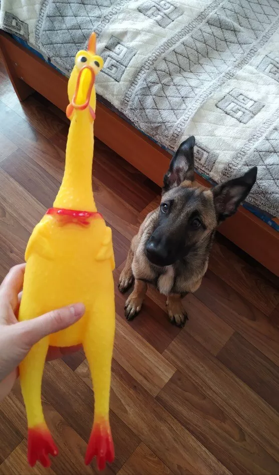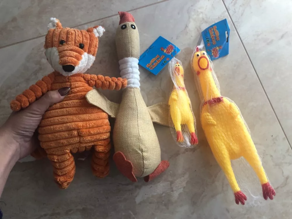 Great chickens. The dog is really getting used to them, barking on them. It's time. Recommend the item, the price is super and fast delivery. Thank you