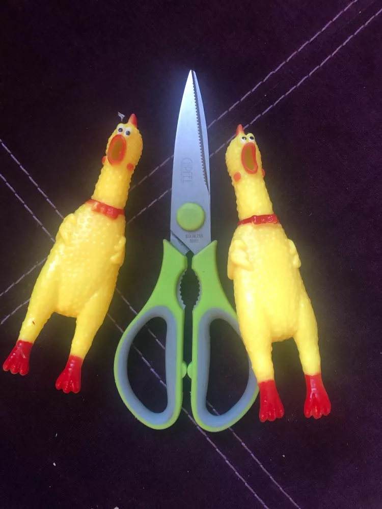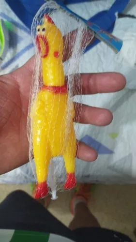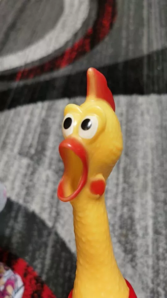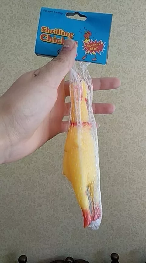 Fair enough product for a cheap rubber chicken. However, if you’re buying this chicken to use as an instrument to play songs like you may have seen on YouTube… Definitely not good for that. The pitch is not variable No matter if you squeeze it hard or soft, faster slow. One pitch only. You’re probably not purchasing this chicken to make music like I was, so I’m sure you’ll be just fine!! If you are intrigued and a little adventurous, get on YouTube and type in “Bohemian Rhapsody, rubber chicken“ in the search bar. 🤣