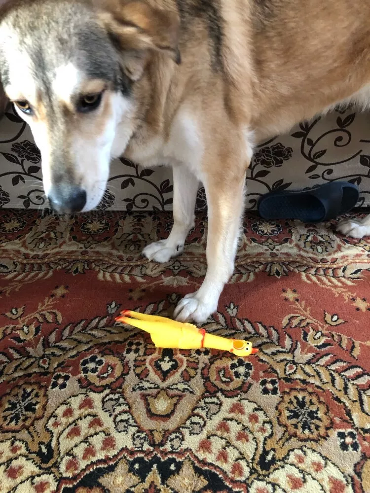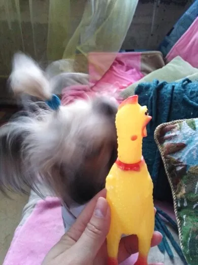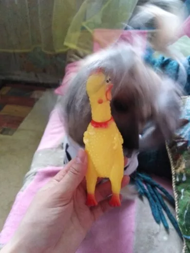 This is my dogs favorite toy! He has had one for years- it is his present to us when we get home or he has does something he is good, etc.... his last one broke after five years of hard use.... I needed one quickly so I ordered a replacement "chicken". It came quickly and was exactly as was expected... it even looks better made than the original one I had... thick rubber chicken with squeaker.... such a happy dog again!!! I was very happy with the customer service, was they send a thank you note too!