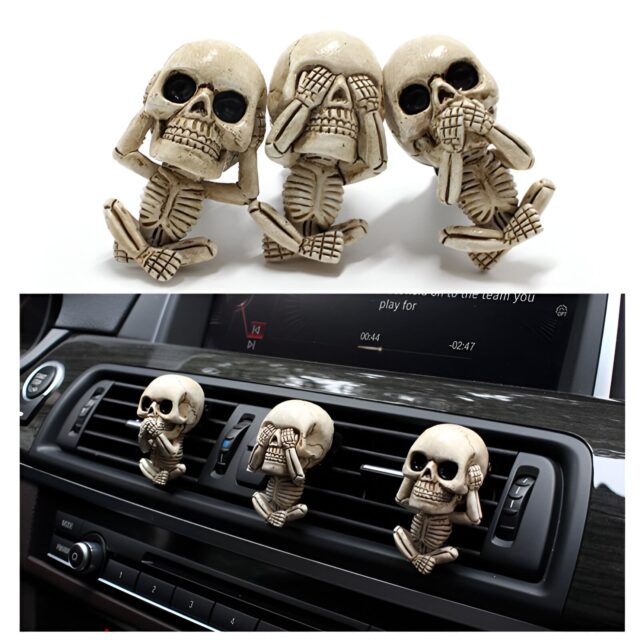 Bring character and refreshing scent to your ride with this unique Skeleton Skull Car Air Freshener Vent Clip. Designed for those who love a hint of the supernatural, this air freshener is both an eye-catching decoration and a practical accessory. Crafted from durable resin, these spooky skeleton charms clip securely to your car’s air vent, releasing a fresh lemon scent that keeps your car smelling clean and inviting. Perfect for Halloween vibes year-round or as a fun statement piece, these skull diffusers add personality to any vehicle.