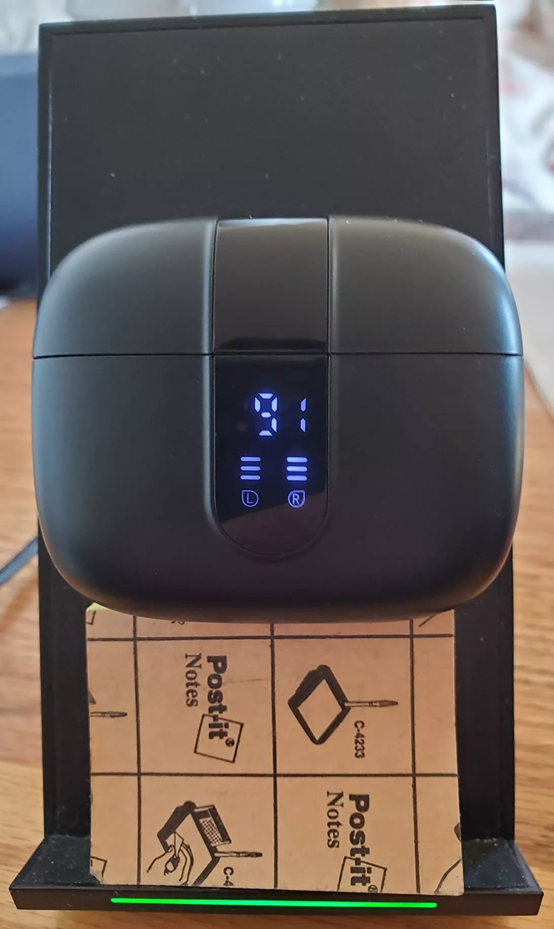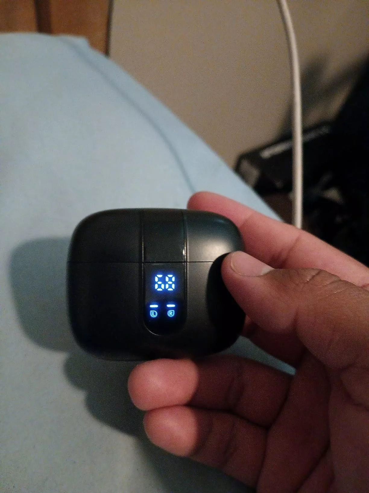 I'm genuinely thrilled with these earbuds! The sound quality is exceptional, requiring only 30-40% volume for a full experience. The fit is impeccable, solving my long-standing issue with earbuds falling out. They were a perfect fit straight out of the box and after three days of use, I'm just now charging them (USB cord included). The battery indicator with numeric display is a plus, and I love the green LED light on the case. The earbuds announce when they're in my ear, and they're so comfortable I hardly notice them. They sync automatically, allowing easy music control with a soft touch. The price is unbeatable. I'm so satisfied that I plan to gift my previous purchases and buy another pair of these for myself. A super happy customer here, and this is a genuine, unpaid review!
